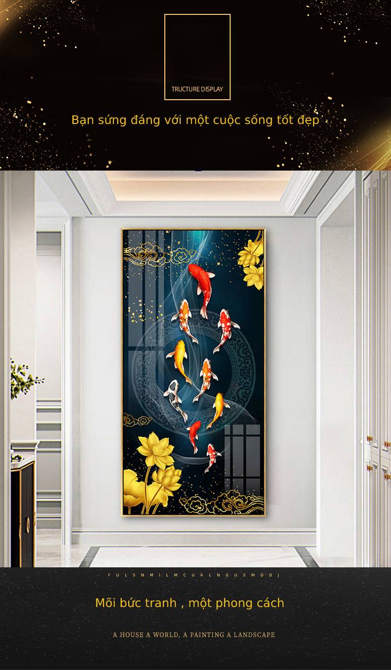 Tranh đứng tráng gương cá và hoa sen